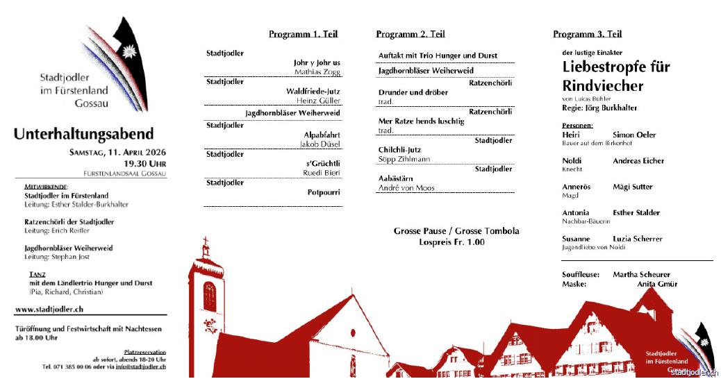 Unser Unterhaltungsabend findet am Samstag, 11. April 2026 statt.